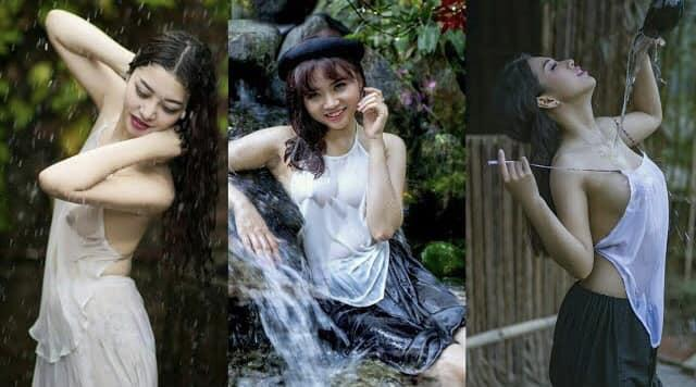 Cô tất bật đi chợ về nhà trọ với tôi, mồ hôi lấm tấm thấm qua lớp lụa mỏng, theo nhịp thở ngực yếm phập phồng hoa cau bưởi mướt. Nhất là những ngày hâm hấp oi nồng, không mặc áo cánh, cô ngồi ngắt rau vặt lá. Từ trên nhìn xuống, đôi gò bồng đảo hương còn ngậm khi ẩn khi hiện, một mạch đào nguyên suối chửa thông (thơ bà Chúa thơ Nôm) sâu hun hút. Để rồi lửa gần rơm lâu ngày cũng bén, cái gì đến nó phải đến. Tôi âm ỉ, ỉ ôi để được luồn tay ôm say, giấc bay lay đỉnh núi, tuột hàng khuy lơi yếm buông mành. Cô ấy cười lủng lẳng đã phanh yếm mỏng thì quăng hết, những nếp xiêm hờ giả bộ ngây. Đang gió đánh đò đưa đến đây, bỗng nhiên trời đang nắng chầy chầy, bỗng có tiếng gà gáy trưa “ó, ó, ooo…o…o…”.