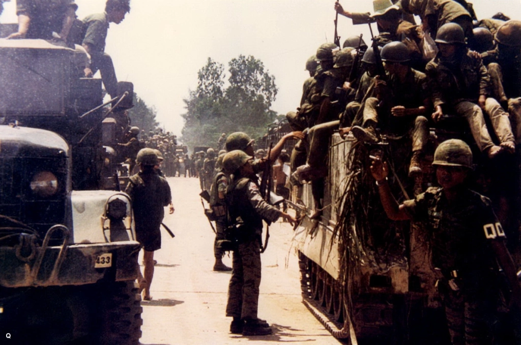 Lần sau hết, trước khi vào thành phố, tôi dừng lại ở ngã ba Long Hưng ghé thăm Tiểu Đoàn 5/TQLC, đơn vị tôi đã phục vụ từ những ngày đầu tiên khi tôi mới ra trường. Bạn tôi, Hồ Quang Lịch bây giờ là đảng trưởng đảng Hắc Long. Nhìn anh ta, tôi bỗng nhớ đến những ngày tháng hành quân, cùng thức khuya dậy sớm ở Bồng Sơn, Tam Quan, Tây Ninh…Cũng vẫn cái dáng dấp đó, con người đó, trực tính như ruột ngựa, yêu ai thì nói là yêu, ghét ai thì nói là ghét, không bao giờ biết đánh lén một ai, ngoại trừ đánh lén Việt Cộng. Hồi còn làm Đại Đội Trưởng, Lịch “húc” nổi tiếng. Thời gian TQLC đánh chiếm Cổ Thành Đinh Công Tráng Quảng Trị, 4 Đại Đội của Tiểu Đoàn 5/TQLC đã luân phiên đánh nhau với một Trung Đoàn CSBV tại khu vực này . Địch luân phiên cấp Tiểu Đoàn, còn bạn tôi luân phiên cấp Đại Đội. Hai bên quần thảo nhau suốt cả tuần, rốt cuộc mưu toan cắt đứt Quốc lộ 1 và cửa ngõ dẫn vào thành phố cũng như giải tỏa bớp áp lực của ta đối với các cánh quân của địch đang tử thủ tại Cổ Thành đã bị Lịch bẻ gãy hoàn toàn. Những tên bộ đội CSBV khi bị bắt đã khai rằng chỉ ngán đụng độ với Hắc Long và Trâu Điên mà thôi.