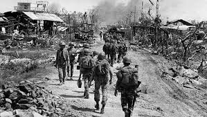 Tôi nhìn quanh, đây là những người tự cho mình cái quyền nghỉ ngơi đôi chút sau những tháng ngày mệt nhọc. Nhìn họ, tôi biết chắc trong tận cùng ý nghĩ của họ, họ nghĩ đến một ngày mai im tiếng súng. Nhưng bây giờ thì…,xa hơn về phía Bắc của thành phố, những cột khói đen bốc lên cao cùng những tiếng nổ í ầm. Địch vẫn còn pháo lai rai, pháo vu vơ, pháo dọ dẫm và pháo cay cú. Có tiếng rít xé gió của một chiếc phản lực bay vút qua bầu trời xám đục. Lại sắp đến mùa mưa nữa rồi. Tôi đã nhiều lần sống giữa mùa mưa rét mướt đó ở vùng đất này. Có người lính TQLC nào mà không trải qua những mùa mưa ở vùng Gio Linh, Quảng Trị ? Mùa mưa dễ gây cho người ta tưởng nhớ đến những ngày ấu thơ êm đềm cũ.