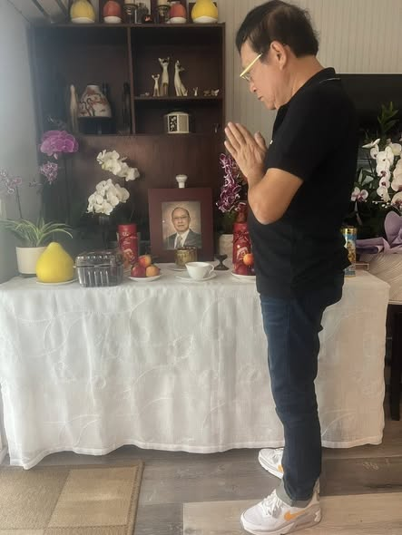 Anh Phạm Hùng Phong niệm hương và nói lời cảm tạ trước bàn thờ Bs Minh Khánh