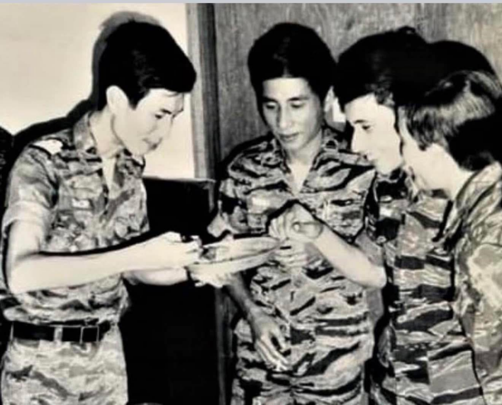 Nhà thơ Đại uý Thủy Quân Lục chiến Phạm Văn Bình năm 1973 (thứ 2 từ trái sang)